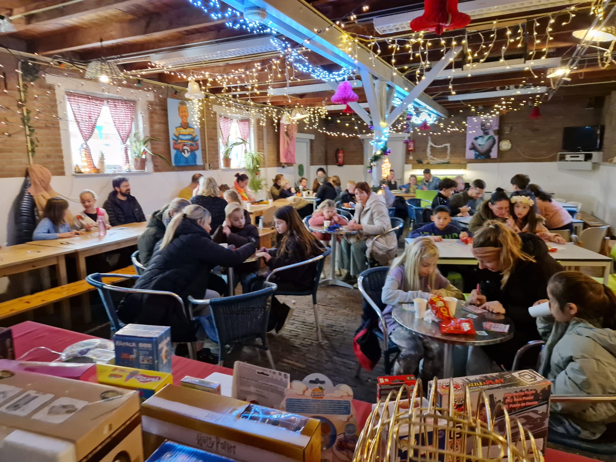 Voor dit grootse spektakel was natuurlijk ook bingomaster Kevin weer naar de Stadsboerderij gehaald. Als hij de getalletjes voorleest weet je dat je moet opletten. Pen in de hand, papiertje voor je neus, en krassen maar. Hij werd geassisteerd door “onze” Martine, die snipverkouden en haast zonder stem gelukkig nog wel de helpende hand kon bieden. Andere vrijwilligers stonden haar bij in de catering. Er waren talloze prijzen, dus genoeg keus voor iedereen. Volgend jaar gaan we dit zeker herhalen!