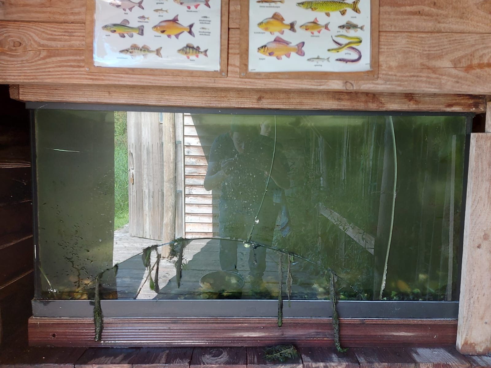 Wat een treurigheid. Deze week werd de heemtuin getroffen door vandalisme. Een aquarium werd onherstelbaar beschadigd, en ook de pomp die daarin zit is niet langer bruikbaar. Verder werd er nog een bootje vernield dat in een van de wateren lag.
